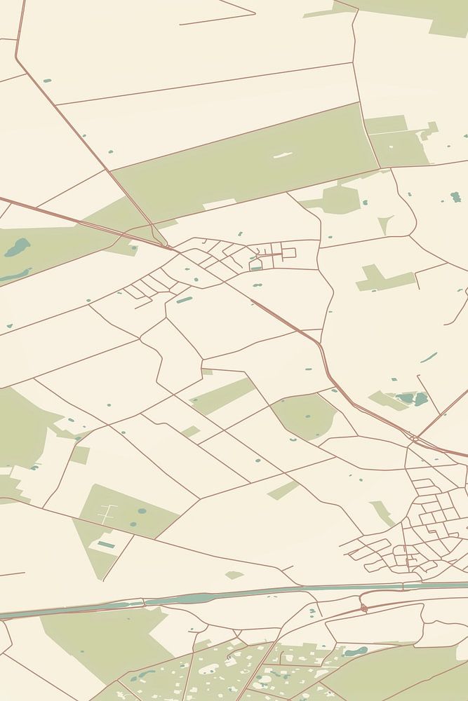 Carte rétro de Mariahout, située dans la commune de Laarbeek, province de Brabant-Septentrional. La carte montre les routes publiques, les cours d'eau (lacs, ruisseaux et fossés) et les forêts dans et autour de Mariahout. En outre, la carte contient les coordonnées de Mariahout.