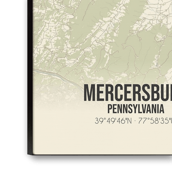 Nostalgie et aventure vont de pair avec cette carte vintage de Mercersburg, Pennsylvanie. La carte vous emmène dans un voyage à travers le temps et vous fait découvrir la polyvalence de ce lieu charmant, situé aux États-Unis.