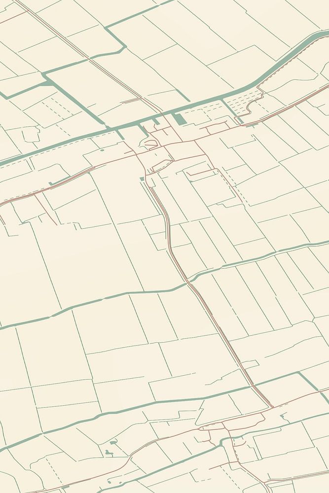 Carte rétro de Ried, située dans la commune de Waadhoeke, province de Fryslan. La carte montre les routes publiques, les cours d'eau (lacs, ruisseaux et fossés) et les forêts dans et autour de Ried. En outre, la carte contient les coordonnées de Ried.