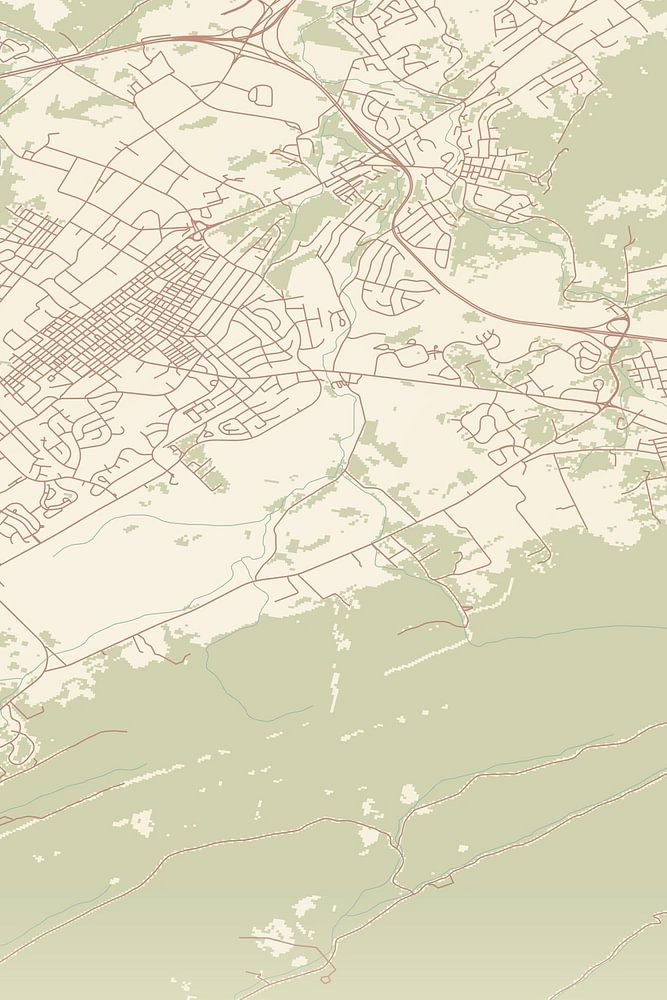 Nostalgie et aventure vont de pair avec cette carte vintage de State College, Pennsylvanie. La carte vous emmène dans un voyage à travers le temps et vous fait découvrir la polyvalence de ce lieu charmant, situé aux États-Unis.