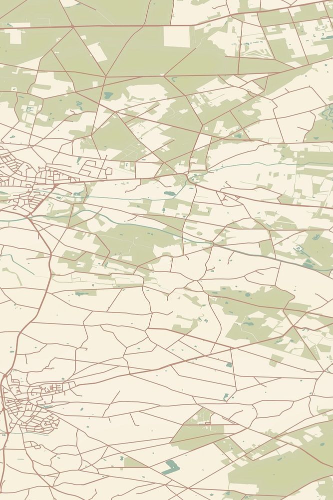 Carte rétro de Vorden, située dans l'Achterhoek, dans la commune de Bronckhorst, province de Gelderland. La carte montre les routes publiques, les cours d'eau (lacs, ruisseaux et fossés) et les forêts dans et autour de Vorden. En outre, la carte contient les coordonnées de Vorden.