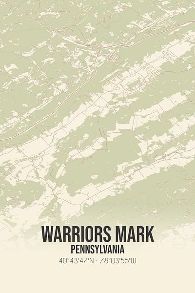 Achetez cette œuvre d'art abstraite Vieille carte de Warriors Mark (Pennsylvanie), USA. par Affiches de lieux sur toile, aluminium, ArtFrame ou photographie (encadrée), impression d'art en haute qualité et tout format.