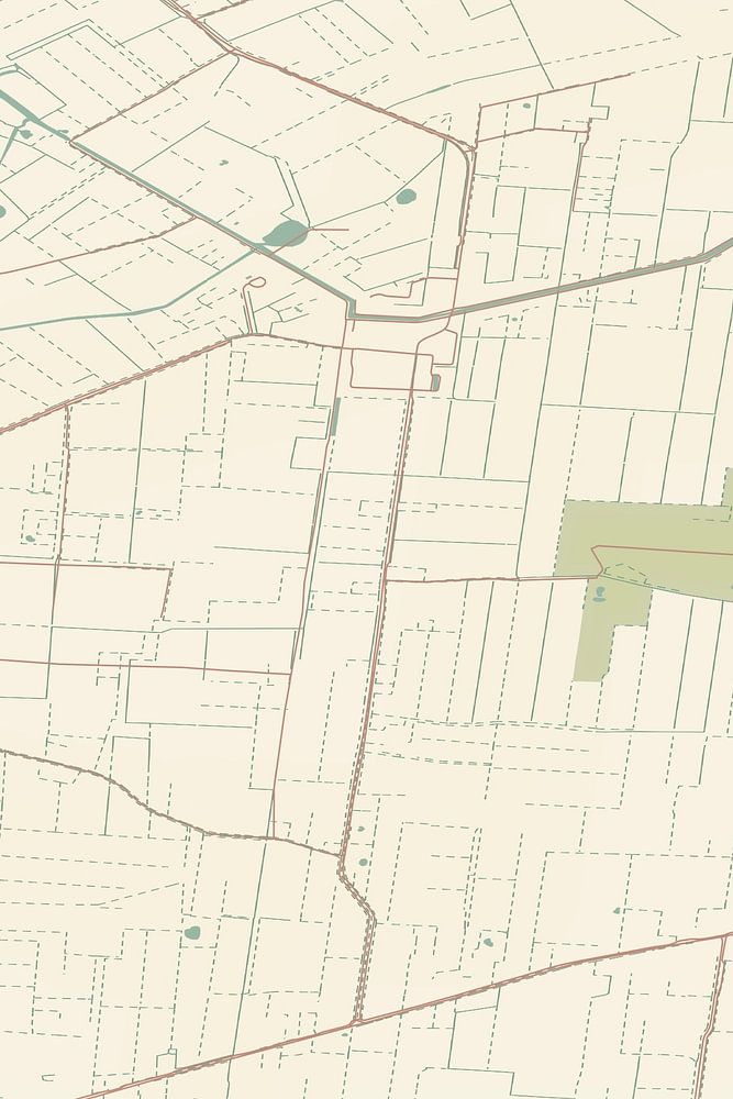 Carte rétro de Waskemeer, située dans la commune d'Ooststellingwerf, province de Fryslan. La carte montre les routes publiques, les cours d'eau (lacs, ruisseaux et fossés) et les forêts dans et autour de Waskemeer. En outre, la carte contient les coordonnées de Waskemeer.