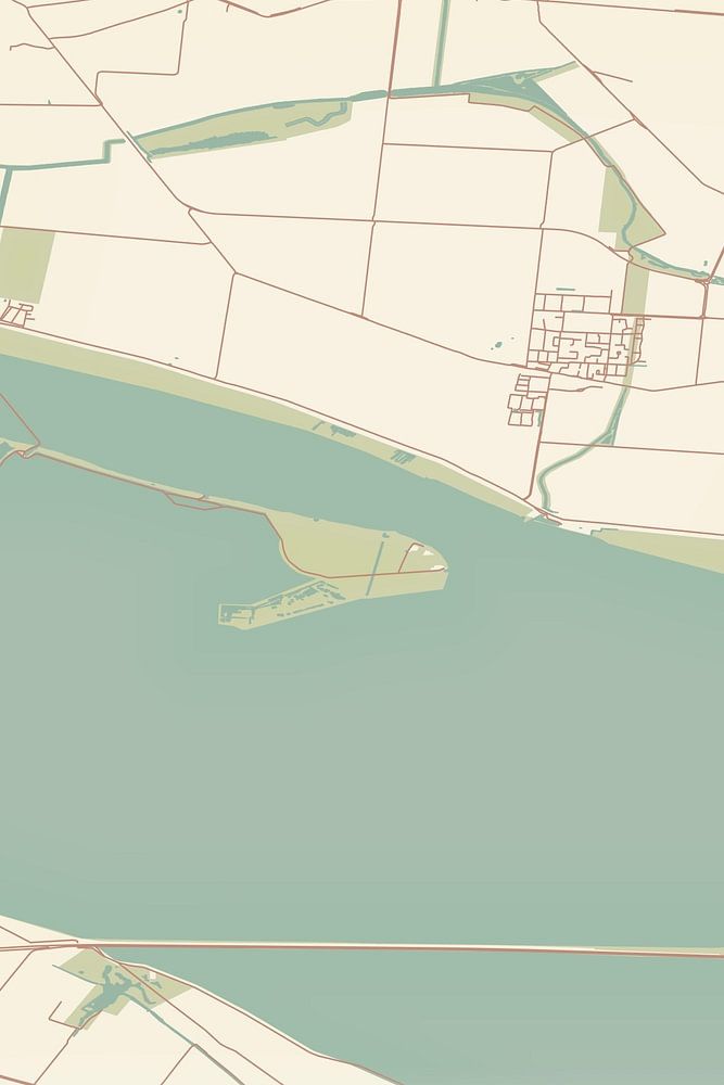 Carte rétro de Zuid-Beijerland, située dans la municipalité de Hoeksche Waard, province de Hollande méridionale. La carte montre les routes publiques, les cours d'eau (lacs, ruisseaux et fossés) et les forêts dans et autour de Zuid-Beijerland. En outre, la carte contient les coordonnées de Zuid-Beijerland.