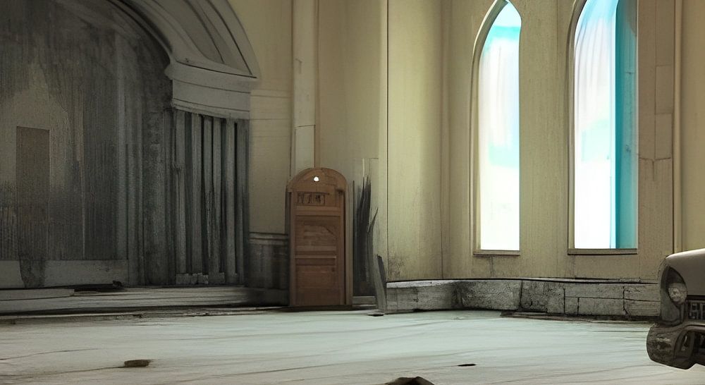 Que fait une vieille voiture américaine dans une église abandonnée ? De quel type d'église s'agit-il, qu'y a-t-il dans le coin ?