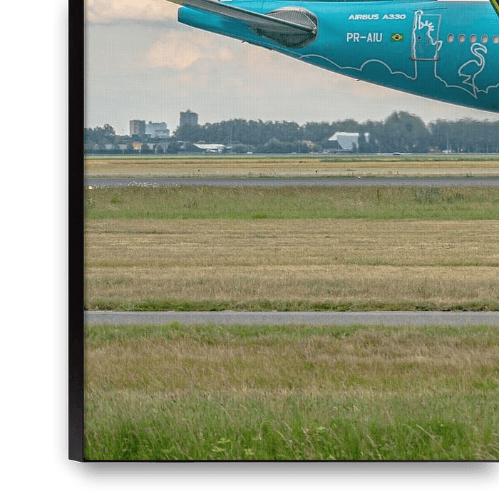 Vient d'atterrir sur le Polderbaan : un Airbus A330-200 aux couleurs magnifiques de la compagnie brésilienne Azul.