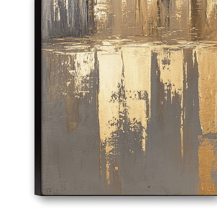 Cette œuvre d'art impressionnante représente une ligne d'horizon abstraite avec des tons dorés et beiges, combinés à des reflets subtils qui donnent un aspect sophistiqué et moderne. Idéal pour un salon, un bureau ou un décor minimaliste, ce tableau apporte une touche de luxe et de tranquillité à tout intérieur. Les accents dorés ajoutent une touche de chaleur, tandis que le style abstrait apporte une élégance intemporelle. Parfait pour les amateurs d'art moderne à la recherche d'un ajout unique et sophistiqué à leur espace.