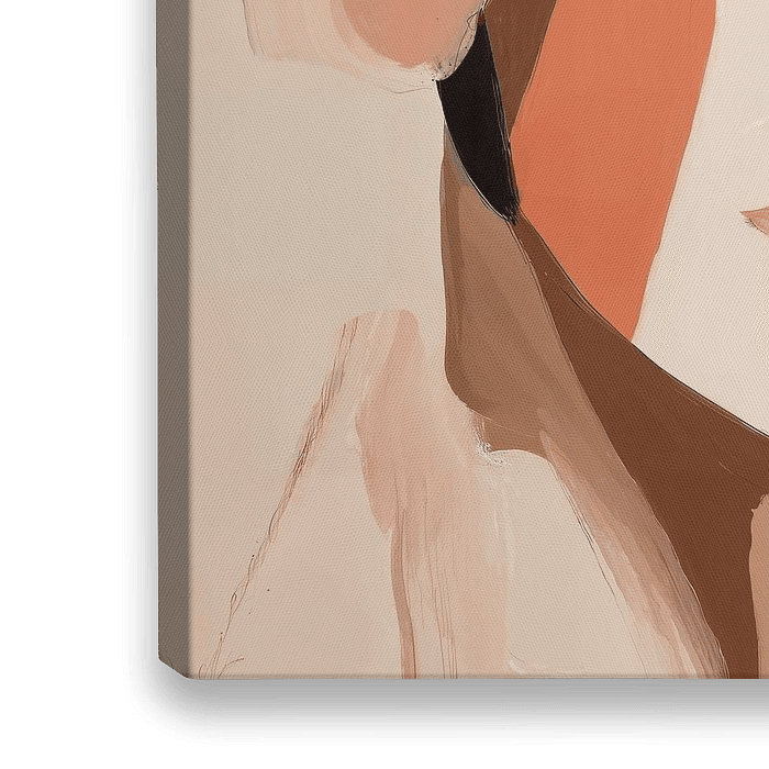Portrait abstrait d'une femme dans les tons de terre. Couleurs : rose, saumon, marron, beige, noir et blanc. Reconnaissable en tant que femme, il laisse une grande place à l'imagination et à l'interprétation personnelle. Intemporel. Convient à différents styles et tendances.
