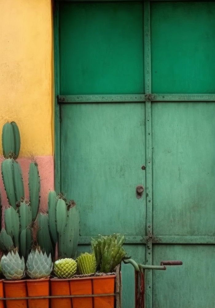 Cette œuvre fait partie de la série et de l'album "Viva Mexico". Avec cette œuvre, nous célébrons les fines combinaisons de couleurs que l'on trouve partout au Mexique. Vous pouvez voir un petit chariot de marché typique rempli de cactus. Une œuvre super sympa pour votre maison, votre restaurant, ou n'importe où vous voulez. Et aussi dans le jardin !