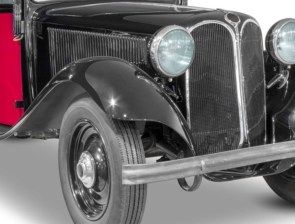 Voiture ancienne bicolore isolée dans un fond blanc avec ombre