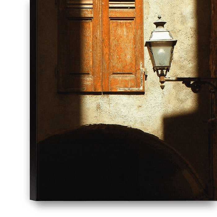 Les tons chauds, les volets en bois écaillés, le vieil arc en briques au-dessus et la lanterne respirent l'Italie&#039 ; pour moi.