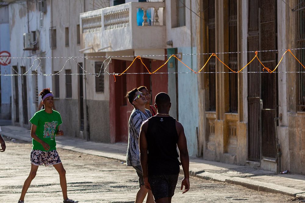 Le soleil se couche, il y a peu de circulation, c'est le moment idéal pour une partie de volley-ball au milieu de La Havane.