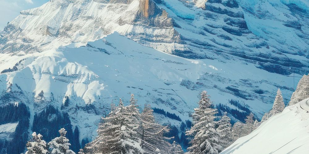 Un voyage pittoresque d'un train rouge vif serpentant à travers les paysages montagneux enneigés des Alpes suisses. Le contraste entre la couleur vive du train et la blancheur immaculée de la neige qui recouvre le sol et les montagnes crée un effet visuel saisissant. Le ciel est clair, avec de légers nuages dispersés sporadiquement, et le soleil projette une chaude lueur sur le paysage, créant un sentiment de sérénité et de calme. Cette image évoque un sentiment d'aventure et d'admiration pour la beauté naturelle et le pouvoir de l'innovation humaine qui se combinent pour rendre possible le voyage dans des régions aussi reculées. Le train, élément petit mais frappant dans le vaste paysage, souligne la grandeur et la présence majestueuse des montagnes.