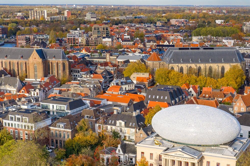A propos de "Vue aérienne de la ville de Zwolle lors d'une belle journée d'automne"