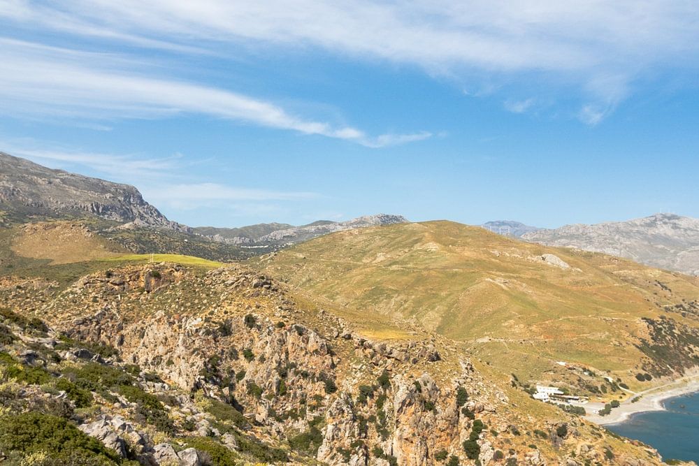 Pour atteindre la plage de Preveli, il faut marcher un long moment pour descendre puis remonter, ce qui était le plus difficile. La vue depuis le sommet était très belle et nous sommes restés à l'observer un moment avant de redescendre.