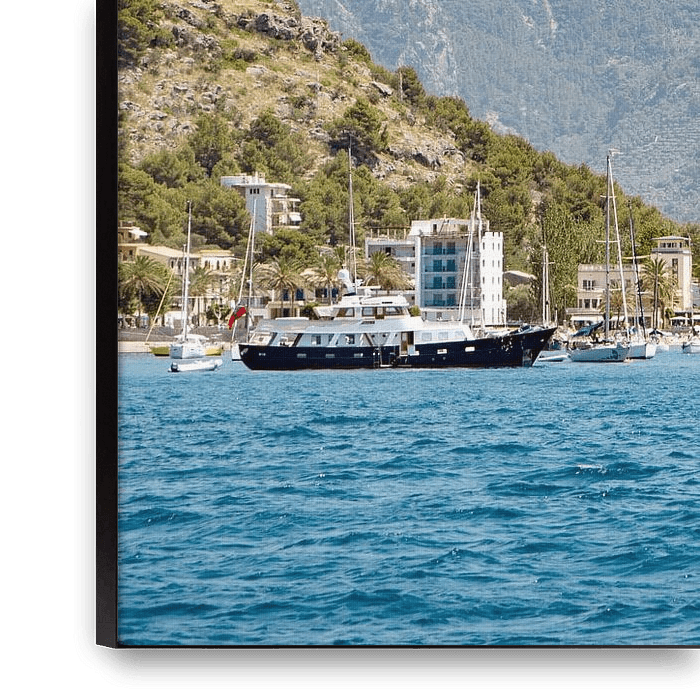 Achetez cette œuvre d'art de paysage Vue du Port de Sóller depuis l'eau par Evelien Oerlemans sur toile, aluminium, ArtFrame ou photographie (encadrée), impression d'art en haute qualité et tout format.