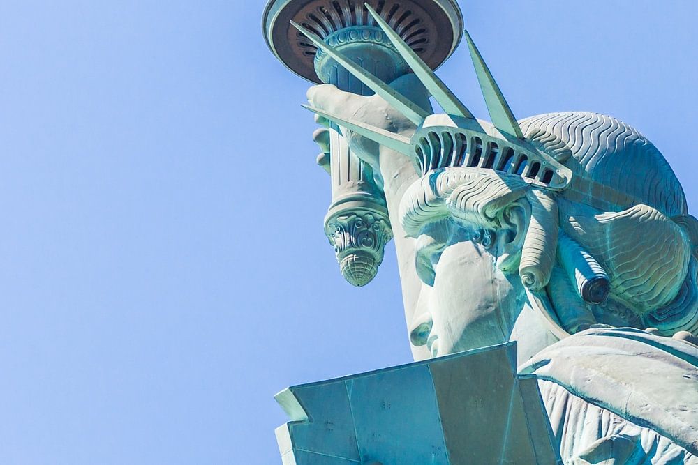 A propos de "Vue rapprochée de la Statue de la Liberté sur un ciel bleu"
