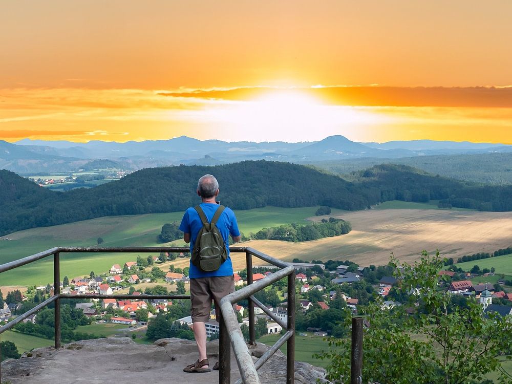 Vue sur les montagnes de grès de l'Elbe au coucher du soleil