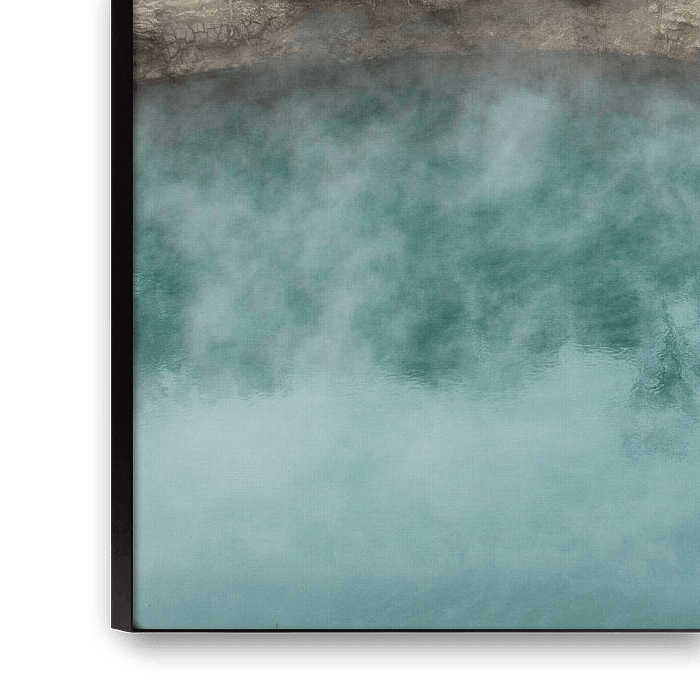 Sur cette photo, on peut voir la vapeur qui se dégage de l'eau lorsque le vent joue avec elle. L'eau est d'un bleu magnifique, la nature verdoyante et les falaises blanches la mettent en valeur. La vapeur blanche ressort également très bien sur cette photo.