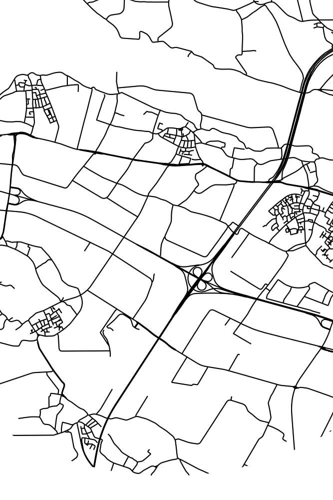 Acheter ce illustration Winssen (Gueldre) | Carte | Noir et blanc par Affiches de lieux sur toile, aluminium, ArtFrame ou photographie (encadrée), impression d'art en haute qualité et tout format.