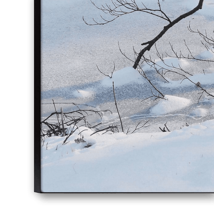 Winters stilleven van takken, sneeuw en ijs op landgoed Elwout in Overveen.