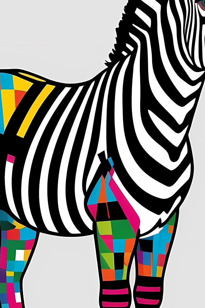 Cette illustration de zèbre saisissante et colorée attire tous les regards et s'intègre parfaitement dans un intérieur moderne. Le motif associe des rayures zébrées classiques en noir et blanc à des zones de couleurs vives dans différentes nuances, ce qui lui confère un aspect ludique et dynamique. Les couleurs contrastées ajoutent une touche d'énergie à n'importe quel espace, tandis que les motifs abstraits confèrent à l'œuvre d'art une touche contemporaine. Cette œuvre d'art est idéale pour les amateurs d'art moderne et ceux qui cherchent à enrichir leur intérieur d'une décoration unique et élégante. Accrochez-la dans le salon, le bureau ou le hall d'entrée pour une touche créative et accrocheuse. Cette illustration apporte de la vie et de la couleur dans la maison et constitue une affirmation visuelle puissante.