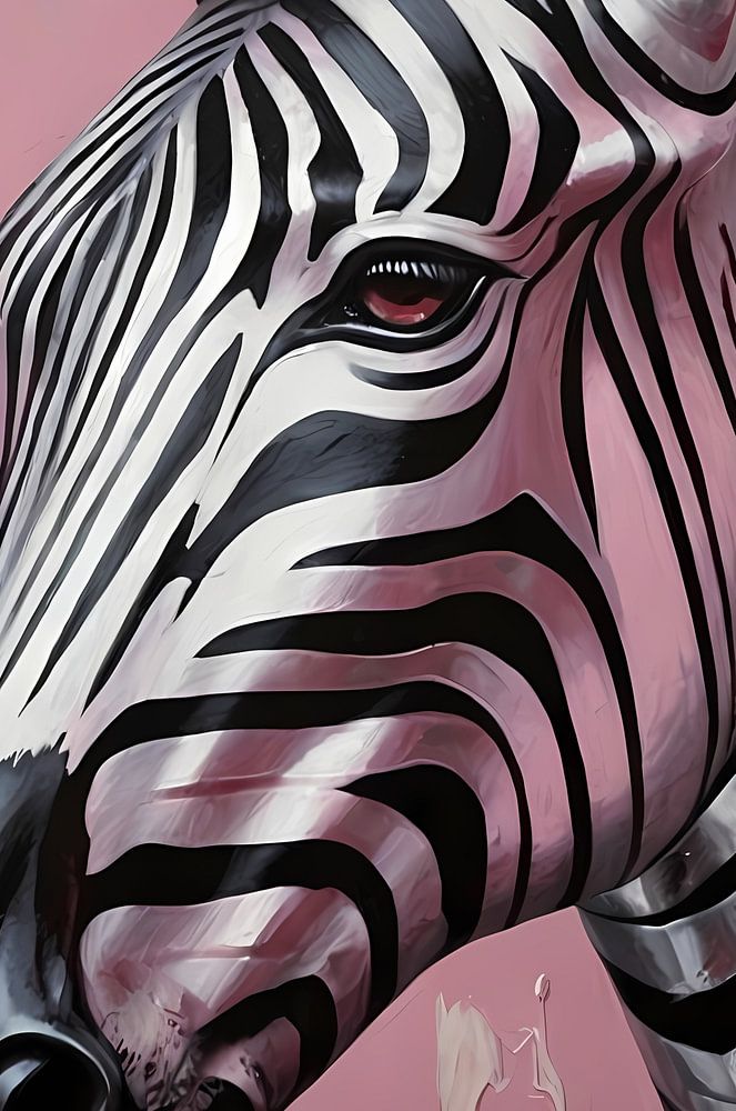 Cette création unique, dont le zèbre est la pièce maîtresse, attire tous les regards dans n'importe quel intérieur. La palette contrastée de noir, de blanc et d'argent sur fond rose ajoute une dimension moderne et ludique à la pièce. Les gouttes distinctives qui semblent couler sur le zèbre confèrent à l'œuvre un caractère dynamique et pourraient facilement devenir le sujet de conversation de la journée. Parfait pour l'amateur d'art qui souhaite combiner son amour des animaux et sa passion pour l'art unique. L'œuvre d'art dégage de la puissance, mais a aussi une touche de douceur grâce à l'utilisation de la couleur et du style, ce qui la rend polyvalente pour une variété d'environnements, du salon moderne à l'espace de bureau inspirant.
