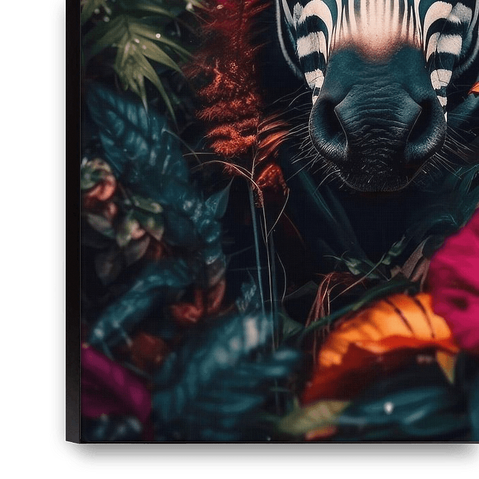 Achetez cette œuvre d'art florale Zèbre entouré de fleurs par Digitale Schilderijen sur toile, aluminium, ArtFrame ou photographie (encadrée), impression d'art en haute qualité et tout format.
