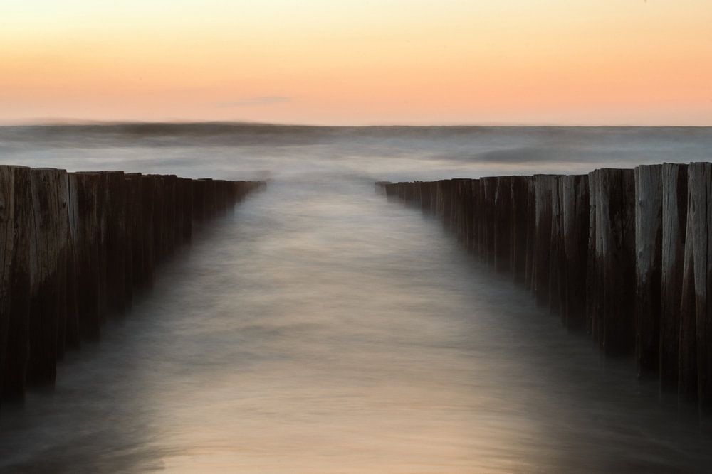 Zonsondergang in Domburg, Zeeland. Prachtig avondrood, gemaakt met tijdopname, waardoor mystiek effect ontstaat.