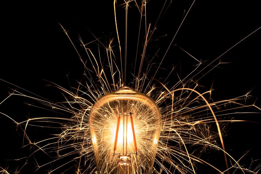 Ampoule avec les étincelles d'une "étoile" à l'ancienne derrière elle.