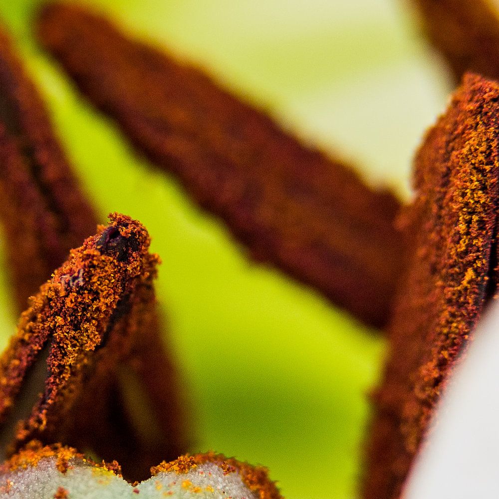 Ensemble, nous sommes en sécurité. Au cœur du lys se trouvent les étamines ensemble. Ils entourent le pilon comme si leur vie en dépendait.