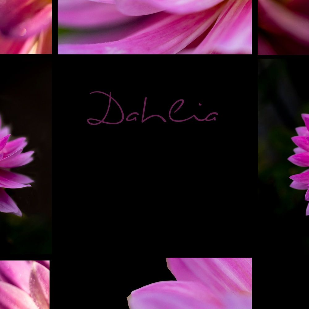 collage de photos d'un Dahlia rose avec des détails tels que des gouttes d'eau et un escargot grâce à la macrophotographie.