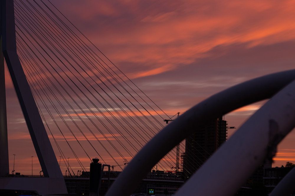 coucher de soleil sur le pont erasmus par Barry van Rijswijk