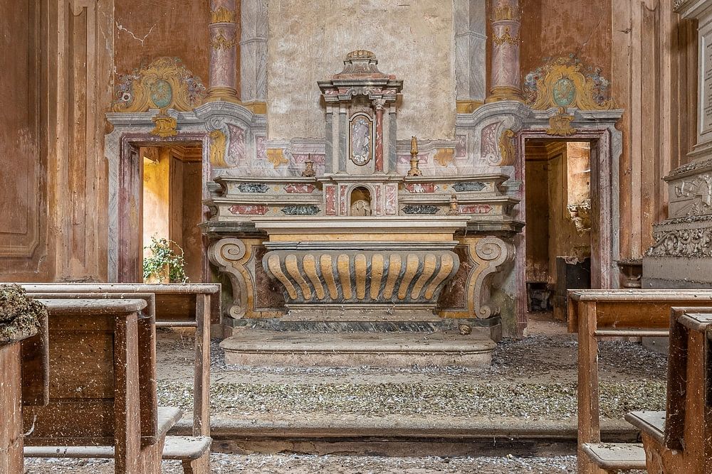 Quelque part dans un petit village d'Italie se trouve cette église abandonnée. En y entrant, une chose ressort : le dernier service célébré dans cette église remonte à plusieurs années. Les couleurs et la lumière rendent cet endroit très spécial, et le fait qu'il y ait des pigeons nous saute aux yeux.