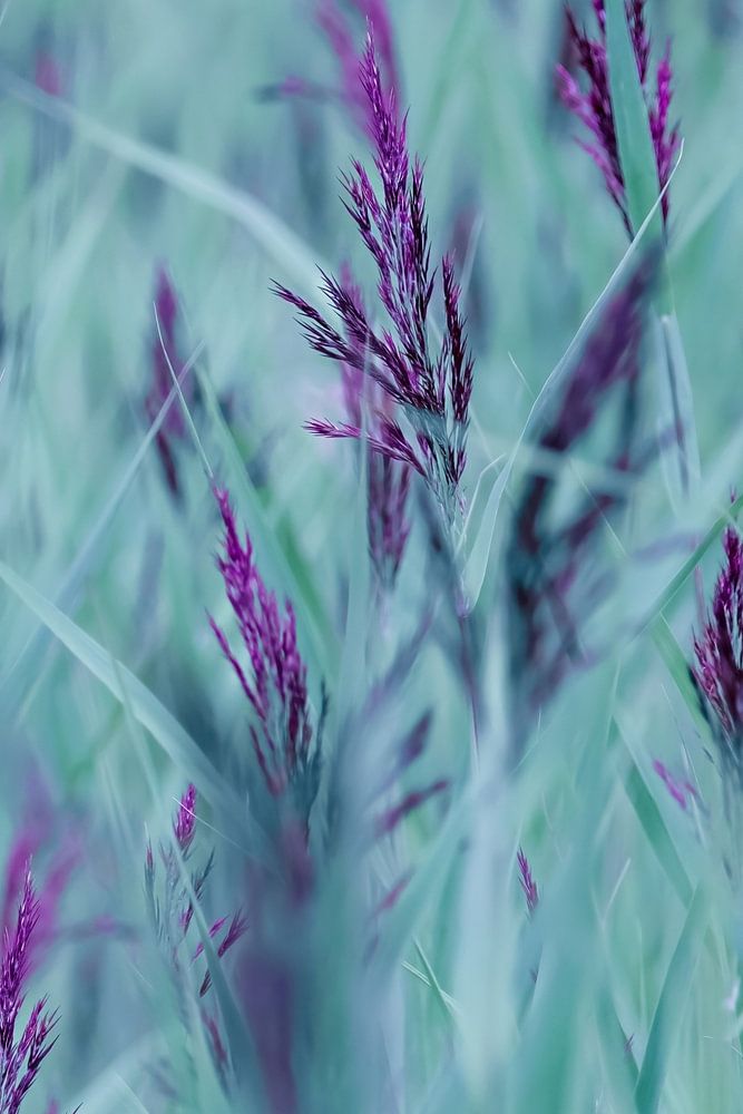 En me promenant en Autriche, j'ai découvert ce beau paysage marécageux avec une herbe des marais appelée Molinia Caerulea. Les tons pétrole, bleu-vert aigue-marine et violet m'ont fascinée. Ce gros plan a permis de créer un beau motif calme et idyllique.