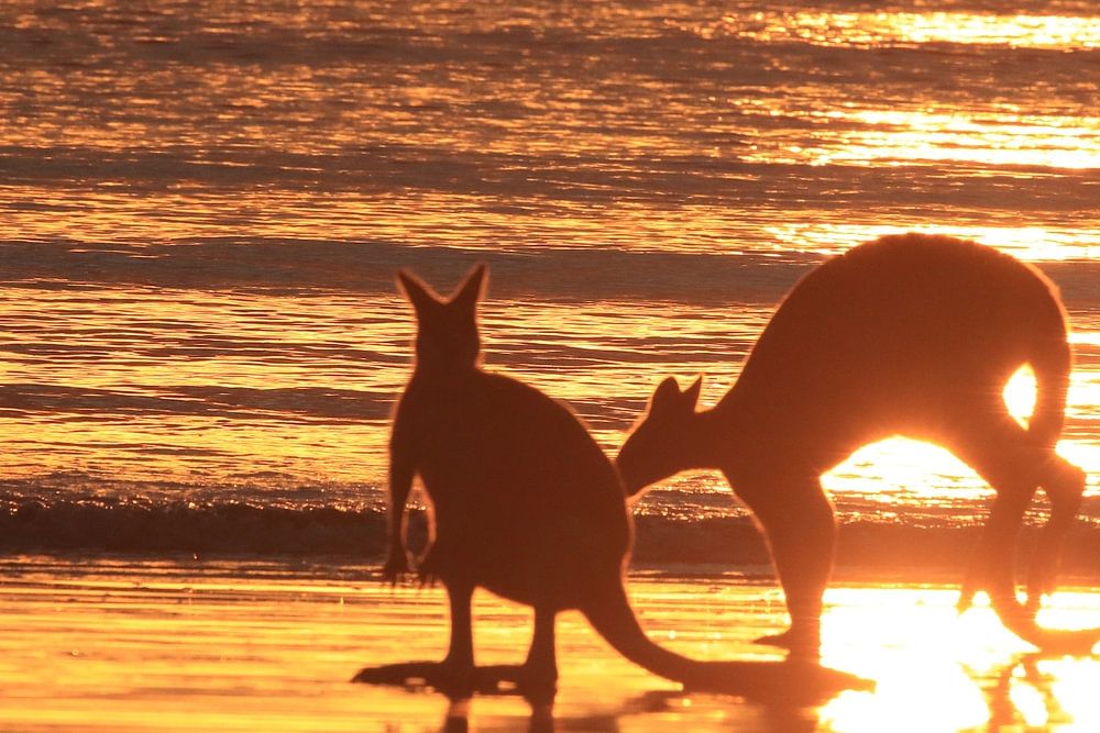 A propos de "kangourou sur la plage au lever du soleil, mackay, queensland du nord, australie"