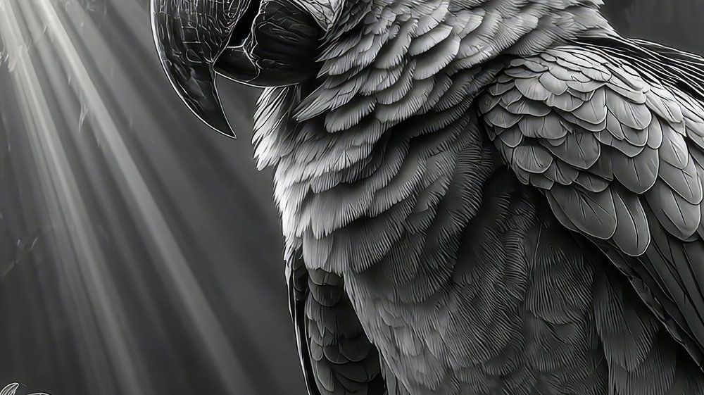 Donnez à votre intérieur une touche unique et élégante avec notre étonnante collection d'images en noir et blanc de perroquets, cacatoès et aras.