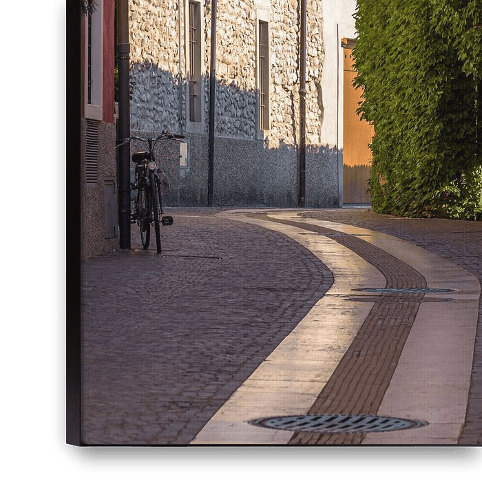 Cette photo a été prise dans la rue Via Rocca dans la ville italienne de Lazise sur le Lac de Garde. Le centre se trouve à l'intérieur de l'ancienne muraille de la ville, avec ses remparts et ses tours.