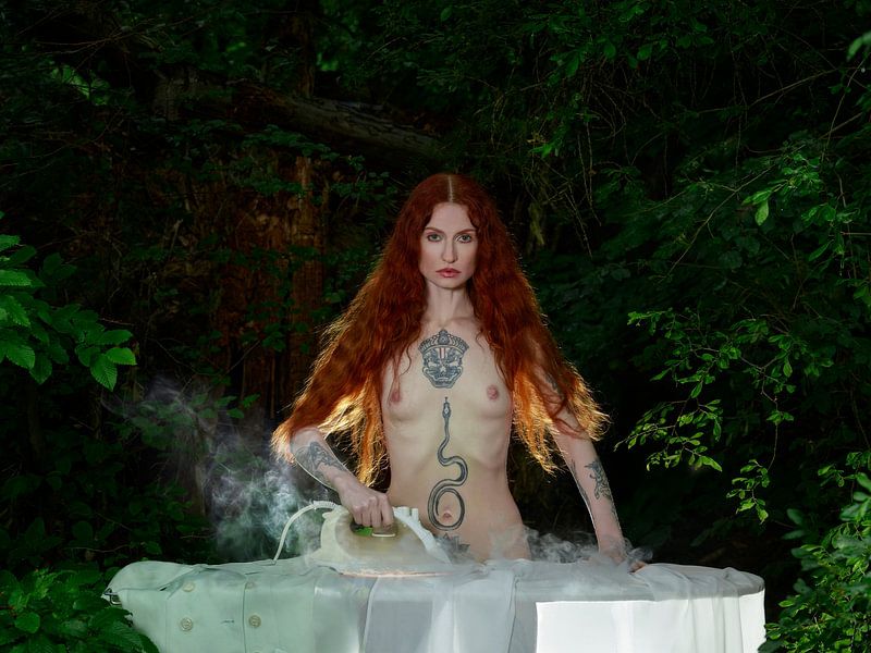 Dans cette œuvre, je voulais montrer le lien puissant entre l'homme et la nature. L'atmosphère enfumée et mon regard déterminé représentent la transformation et la force. Grâce à la photographie numérique, je capte une énergie mystique qui remplit chaque espace d'une aura à la fois mystérieuse et vivante. C'est une expression…