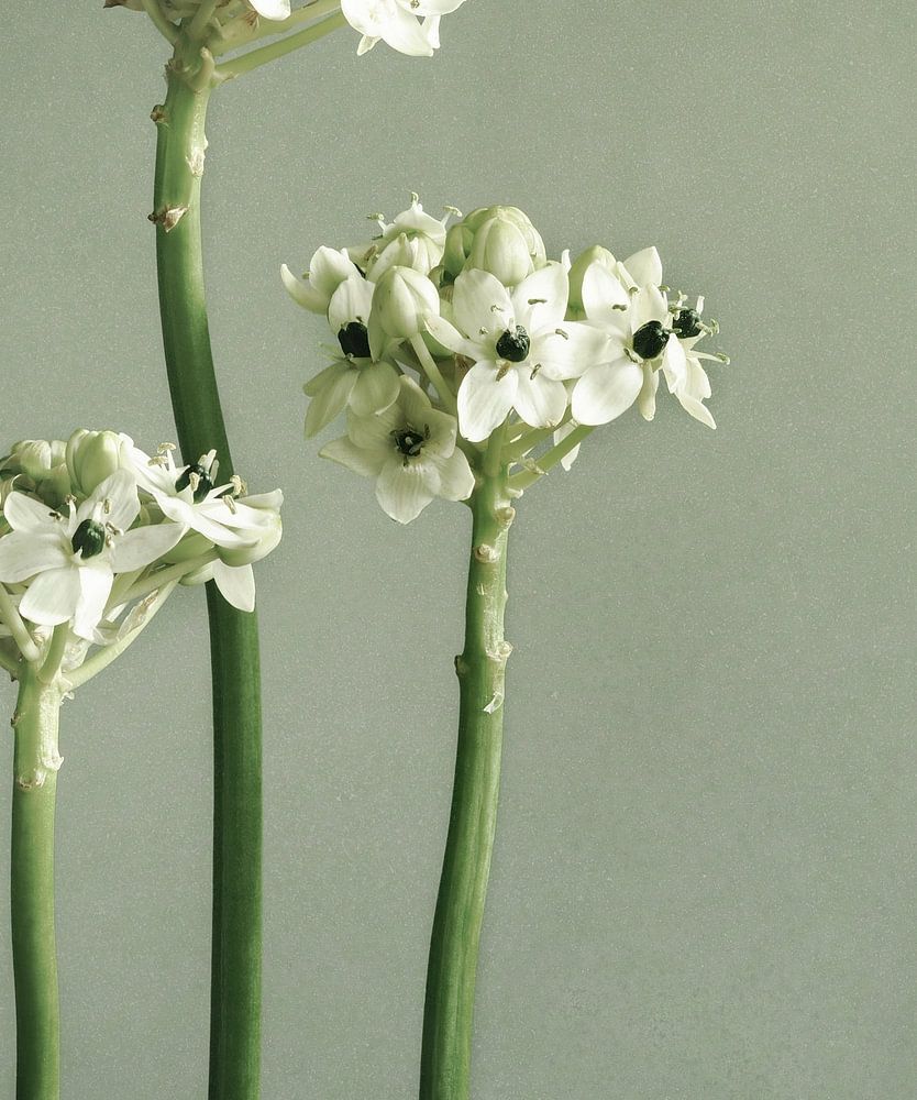 sculpture minimaliste de 3 tiges avec des fleurs blanches