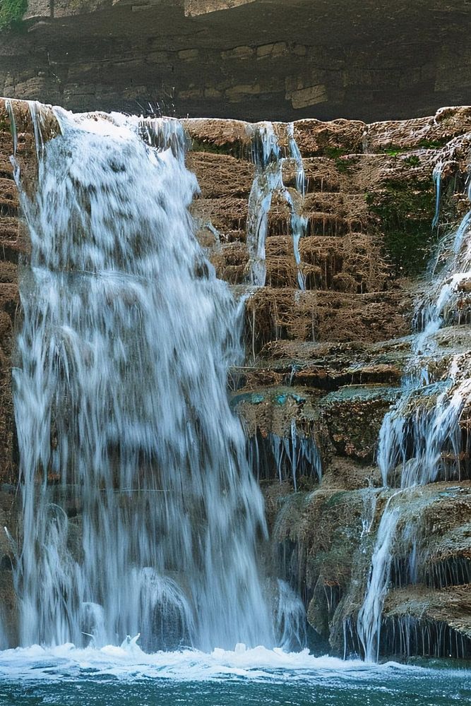 Laissez la beauté de la nature pénétrer dans votre maison grâce à ce tirage photo à couper le souffle. Une puissante cascade plonge dans une piscine cristalline, encadrée par une fenêtre en pierre naturelle. Les riches textures de la pierre et le contraste entre l'ombre et la lumière créent une impression de profondeur et de drame. Complétant parfaitement tout style d'intérieur moderne ou minimaliste, cette œuvre d'art apporte une touche de calme et de sérénité à la maison.