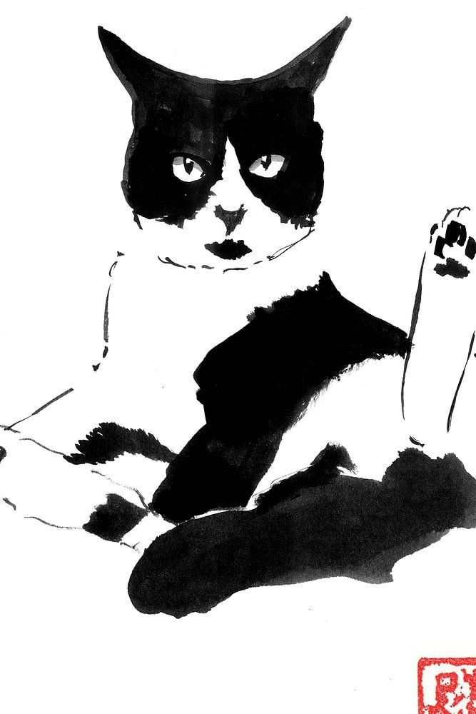 Acheter ce tableau washing cat par Péchane Sumie sur toile, aluminium, ArtFrame ou photographie (encadrée), impression d'art en haute qualité et tout format.