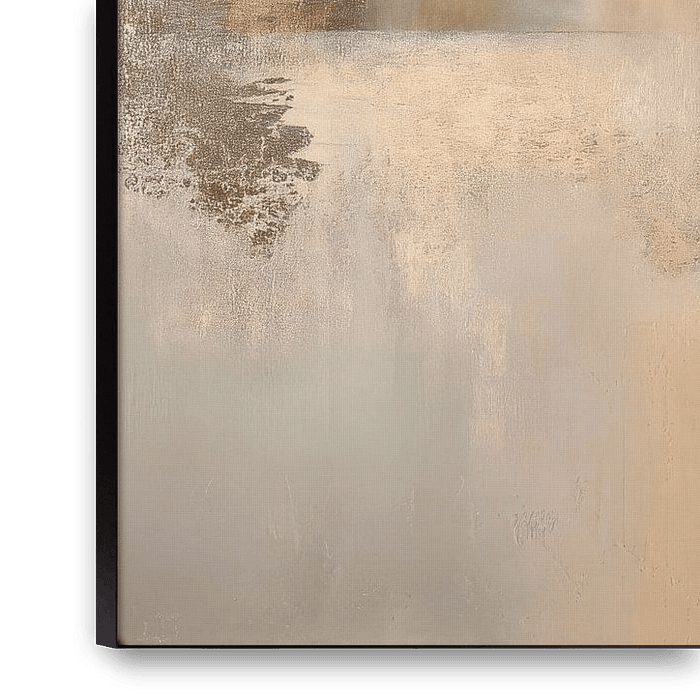 Des surfaces de couleur délicatement superposées forment une composition calme et équilibrée d'une grande profondeur. Des tons chauds de beige, de crème et de sable s'associent à des nuances froides de gris pour former un paysage pictural abstrait qui évoque des silhouettes urbaines, des strates et des horizons silencieux. Les…