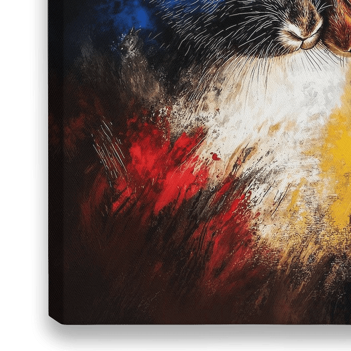 Lapins, lapins, art animalier, peinture abstraite, portrait d'animal, contraste de couleurs, art naturel, amitié, dualité, symbolisme, style artistique moderne, art émotionnel, tableau coloré, décoration d'intérieur, chambre d'enfant