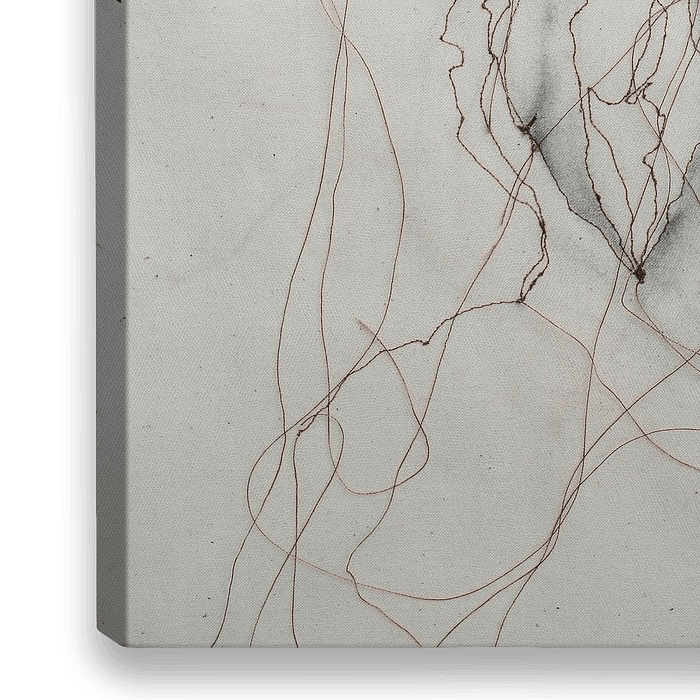 Une œuvre figurative de fil brun, fusain & craie sur toile. Une ode à la sensualité féminine.