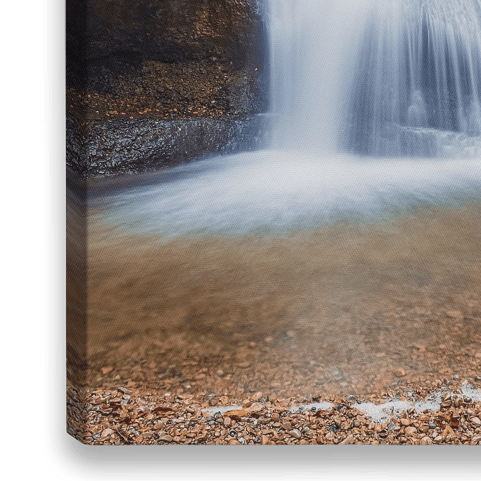 L'eau soyeuse s'écoule doucement à travers des rochers couverts de mousse et entourés d'une forêt luxuriante. La vitesse d'obturation lente transforme le mouvement du cours…