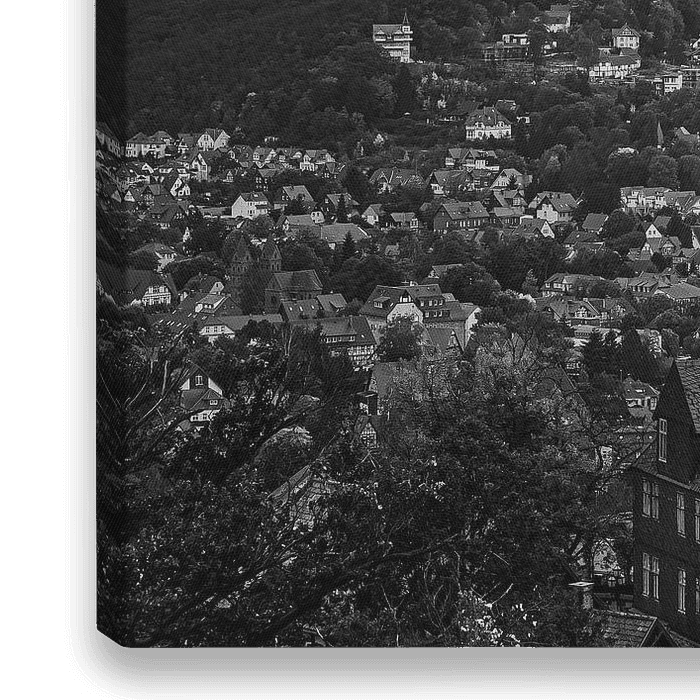 Une photo du soir en noir et blanc avec des nuages menaçants au-dessus du célèbre château de Wernigerode.