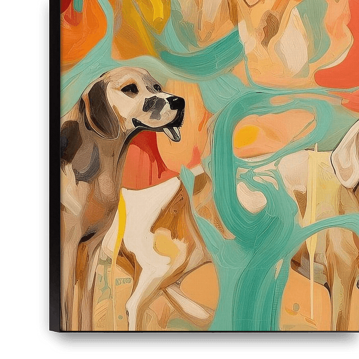 Achetez cette œuvre d'art abstraite Chiens en train d'être | Œuvre d'art moderne par Peintures accrocheuses sur toile, aluminium, ArtFrame ou photographie (encadrée), impression d'art en haute qualité et tout format.