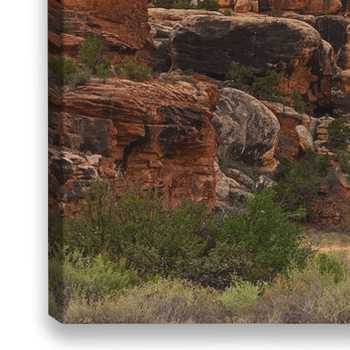 Photo panoramique pendant le coucher du soleil au camping de Devils Kitchen en regardant vers le parc Chesler dans le Needles District du parc national de Canyonlands dans l'État de l'Utah, dans le sud-ouest des États-Unis.