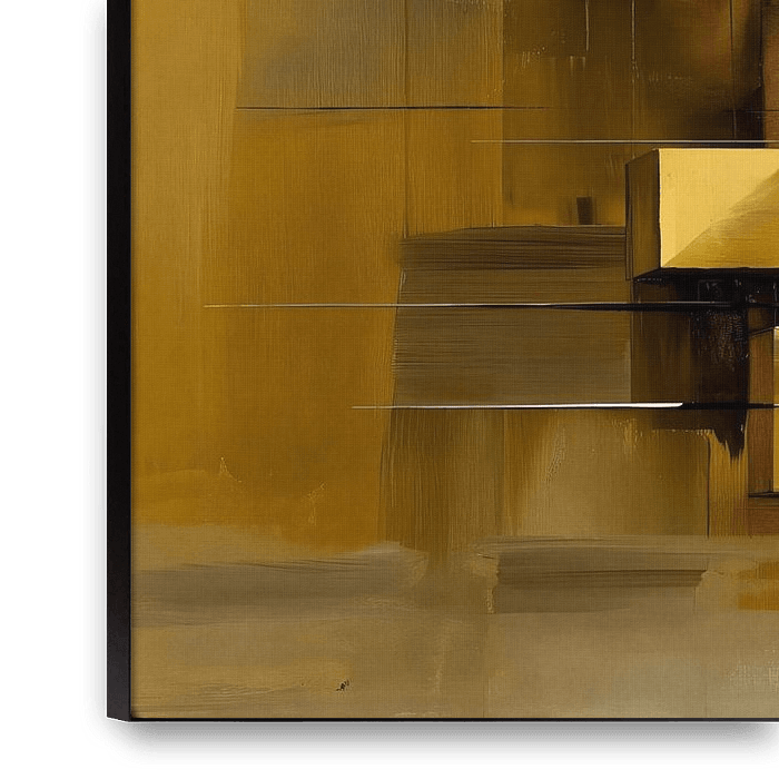 Art abstrait dans les tons beige et or avec des cubes/blocs dans un style tridimensionnel.